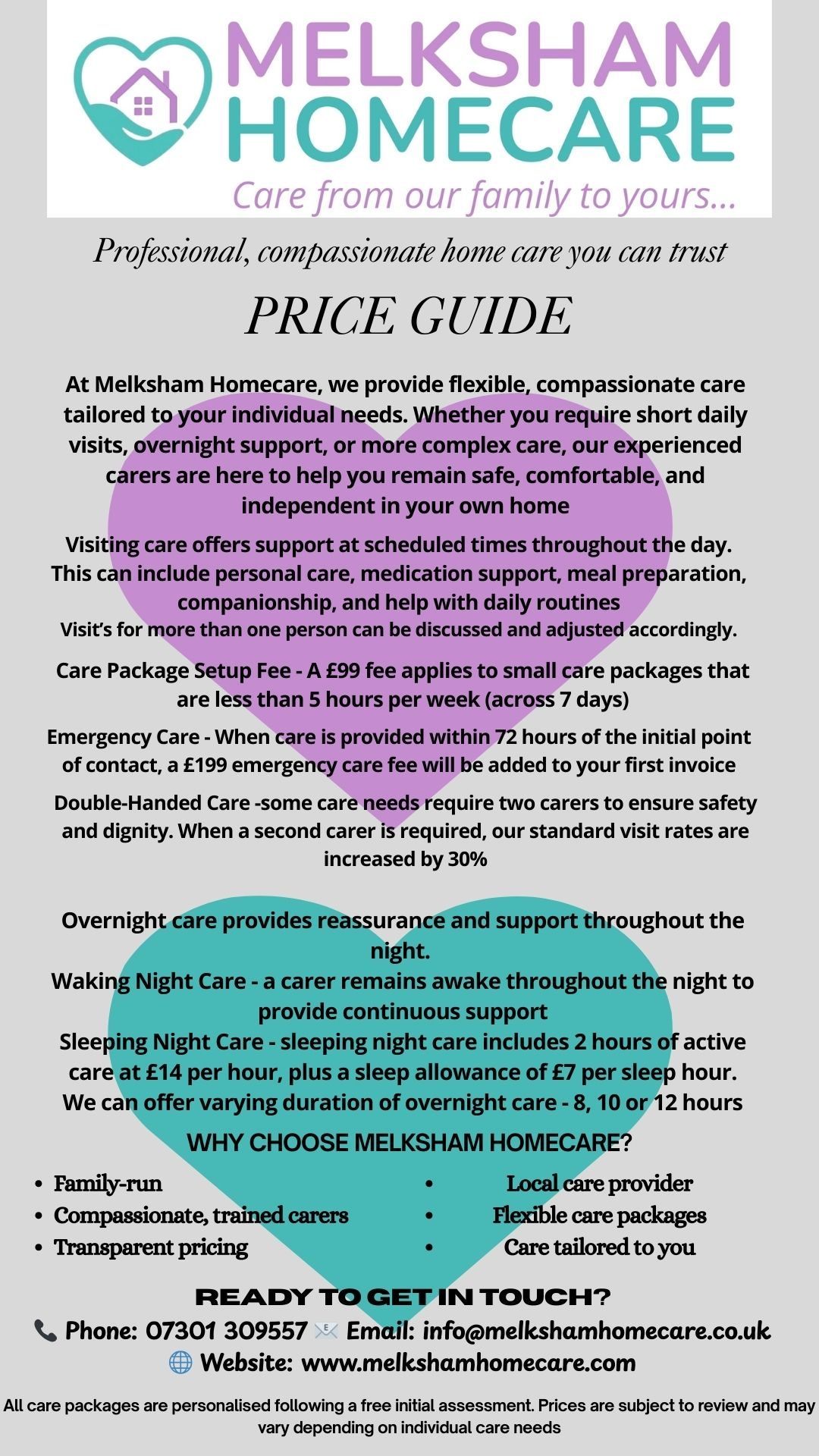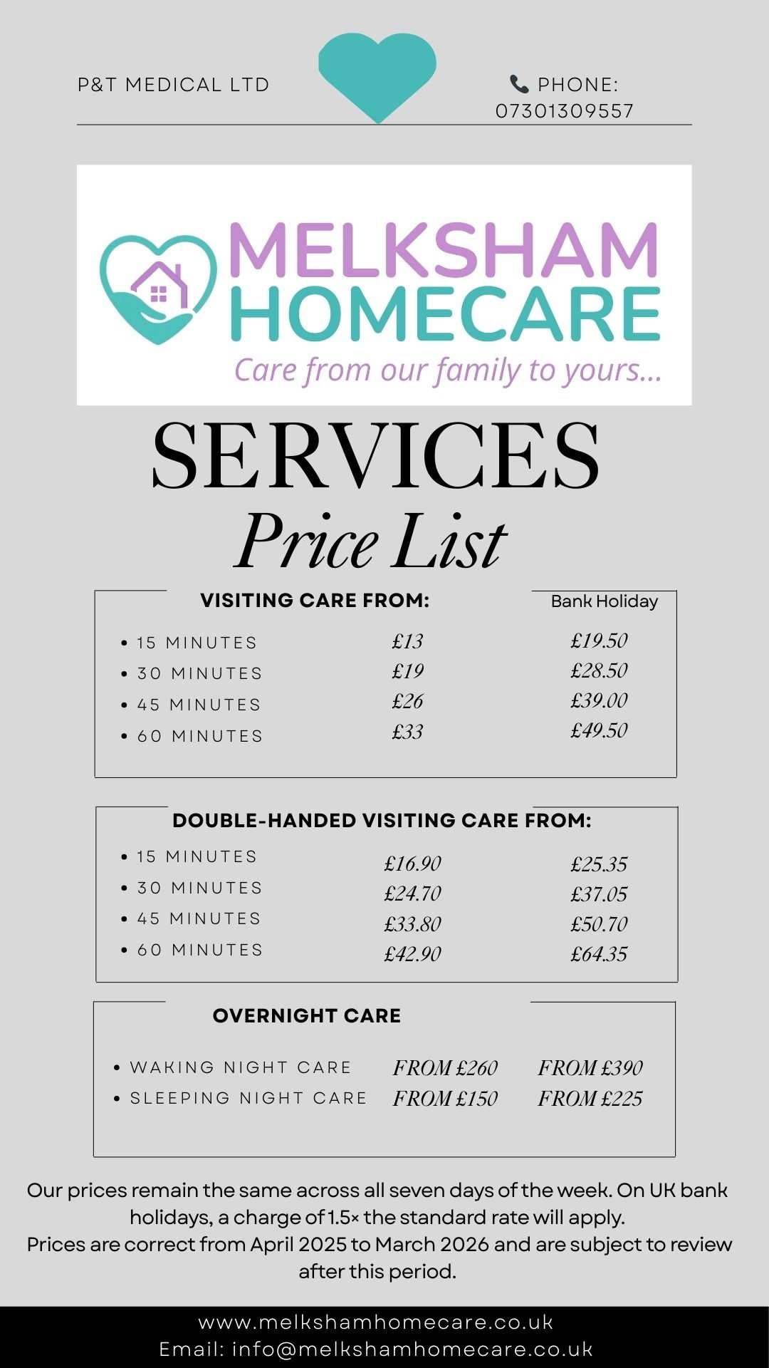 Melksham Homecare is a domiciliary care service provided by P&T Medical Ltd.